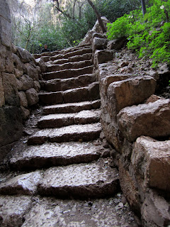 Some of the stairs to Korykion Antron (The pit of heaven and hell). Can you see Adam? He is standing in the pit of heaven part and I'm in the cavern of hell part. |
